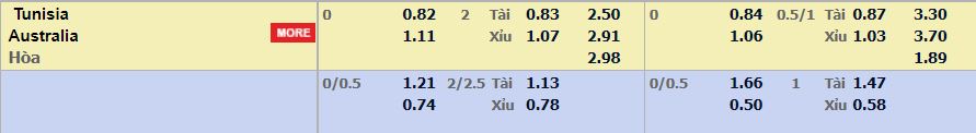 • Mức kèo nhà cái cược chấp trận này: Hòa – Được – Thua. Tunisia ăn 0,82. Úc ăn 1,11