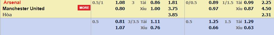 - Mức kèo nhà cái cược chấp trận này: Arsenal chấp 0,75 Trái. Arsenal ăn 1,08. Manchester Utd ăn 0,80