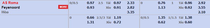 Tỷ lệ cược AS Roma vs Feyenoord – 02h00 – 26/05/2022