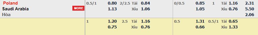 - Mức kèo nhà cái cược chấp trận này: Ba Lan chấp 0,75 trái. Ba Lan ăn 0,89. Ả Rập Saudi ăn 1,13