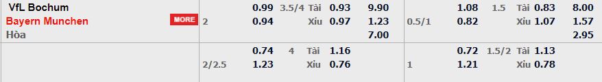 - Mức kèo nhà cái 188bet ra cược chấp trận này: Bayern Munich chấp 2 Trái. Bochum ăn 0,99. Bayern Munich ăn 0,94