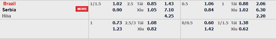 Bởi vậy dù mạnh hơn đáng kể nhưng các vũ công Samba chỉ được đánh giá là chấp 1 quả, một tỉ lệ không quá sâu. Về kèo tài xỉu, lịch sử đối đầu cho thấy 2 lần Brazil và Serbia gặp nhau trước đó đều có ít hơn 2 bàn thắng. Và cũng như nhận định trên, Serbia không phải đối thủ dễ chịu, vậy nên trận đấu này khả năng cao sẽ không có nhiều bàn thắng.