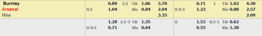 - Mức kèo nhà cái cược chấp trận này: Arsenal chấp 0,5 Trái. Burnley ăn 0,89. Arsenal ăn 1,02