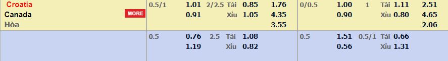 Kèo châu Á đưa ra mức kèo đội tuyển Croatia chấp 0,5-1 trước đội tuyển Canada, song với những gì đã thể hiện trước Maroc thì nhiều khả năng Croatia sẽ tiếp tục gặp khó khi phải đối đầu với những đường phản công tốc độ bên phía Canada. Có lẽ đại diện của châu Âu sẽ phải nhận trận hòa thứ 2. Chọn Canada. Còn kèo tài xỉu đang ghi nhận mức cược 2,5. Đây là kèo giới chuyên gia nhận định nên vào cửa xỉu vì dù khao khát ghi bàn nhưng trước 1 Croatia có hàng phòng ngự kỷ luật thì rất khó để Canada có được bàn thắng. Ngoài ra, 6/9 trận gần đây của Croatia đều về cửa xỉu.