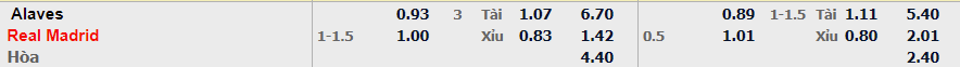 - Mức kèo nhà cái đưa ra trận này: Real Madrid chấp 1,25 Trái. Deportivo Alaves ăn 0,93. Real Madrid ăn 1,00