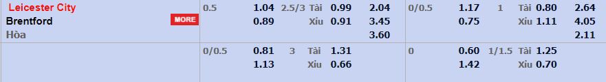 Với lợi thế về sân nhà, Leicester City được đánh giá cao hơn nay lại càng tự tin hơn vào một chiến thắng trước Brentford. Đây là cơ hội để bầy Cáo cho thấy rằng họ sẽ nỗ lực để quay lại thời kì đỉnh cao như 2016. Một chiến thắng sẽ thuộc về Leicester.