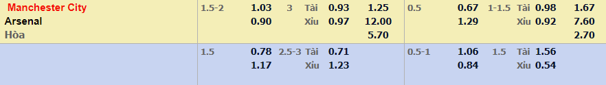 - Mức kèo nhà cái cược chấp trận này: Manchester City chấp 1,75 Trái. Manchester City ăn 1,03. Arsenal ăn 0,90