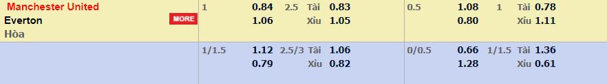 - Mức kèo nhà cái cược chấp trận này: Manchester Utd chấp 1 trái. Manchester Utd ăn 0,84. Everton ăn 1,06