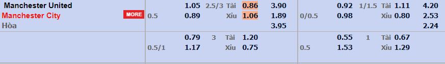 - Mức kèo nhà cái cược chấp trận này: Manchester City chấp 0,5 Trái. Manchester Utd ăn 1,05. Manchester City ăn 0,89