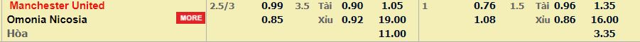 - Mức kèo nhà cái cược chấp trận này: Man Utd chấp 2,75 trái. Man Utd ăn 0,99. Omonia ăn 0,85