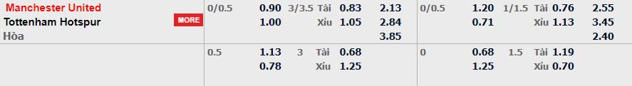 - Mức kèo nhà cái cược chấp trận này: Manchester Utd chấp 0,25 Trái. Manchester Utd ăn 0,90. Tottenham ăn 1,00
