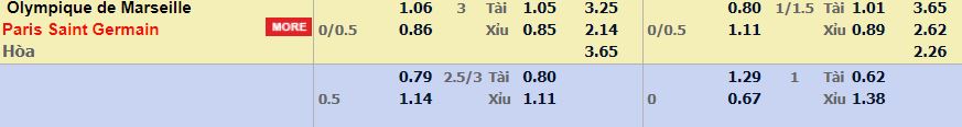 - Mức kèo nhà cái cược chấp trận này: Paris SG hấp 0,25 Trái. Marseille ăn 1,06. Paris SG ăn 0,86