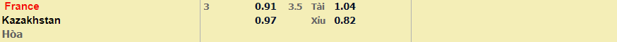 - Mức kèo nhà cái cược chấp trận này: Pháp chấp 3 Trái. Pháp ăn 0,91. Kazakhstan ăn 0,82