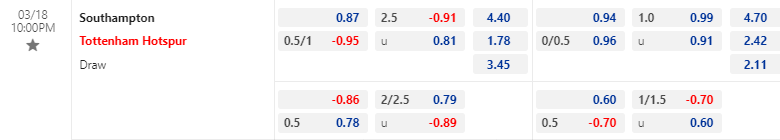 Tỷ lệ kèo bóng đá Southampton vs Tottenham – 22h00 – 18/03/2023