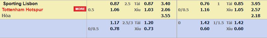 - Mức kèo nhà cái 188bet cược chấp trận này: Tottenham chấp 0,5 Trái. Sporting Lisbon ăn 0,87. Tottenham ăn 1,06
