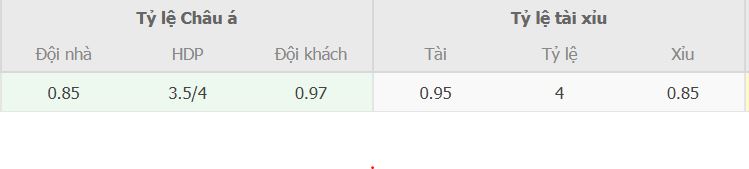 - Mức kèo nhà cái tài xỉu trận này: 4 trái. Kèo Tài ăn 0,95. Kèo Xỉu ăn 0,85