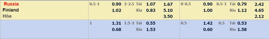 - Mức kèo nhà cái cược chấp trận này: Nga chấp 0,75 Trái. Nga ăn 0,90. Nga ăn 1,02