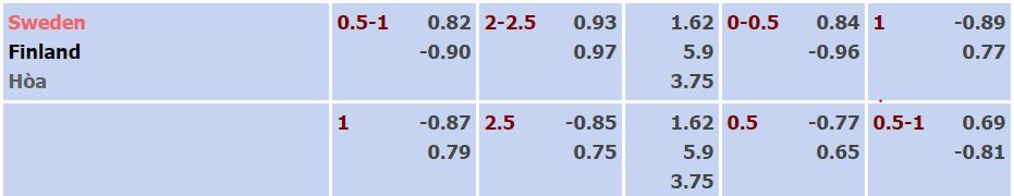 - Mức kèo nhà cái cược chấp trận này: Thụy Điển chấp 0,75 Trái. Thụy Điển ăn 0,82. Phần Lan ăn 1,00